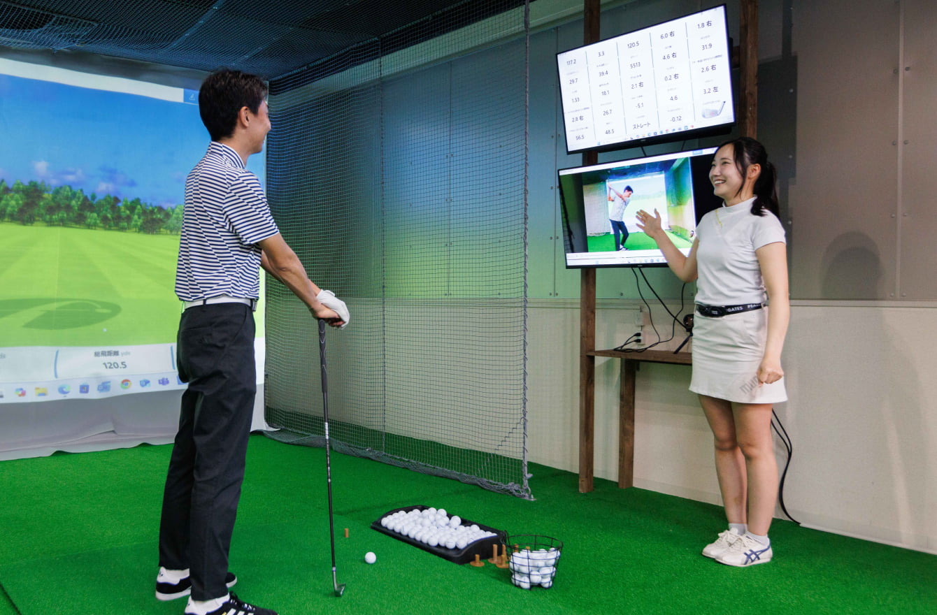 まったくの初心者の方でもクラブの握り方からレッスンを受けていただき、コーチがお客様に合わせたアドバイスを行いますのでご安心してお越しください